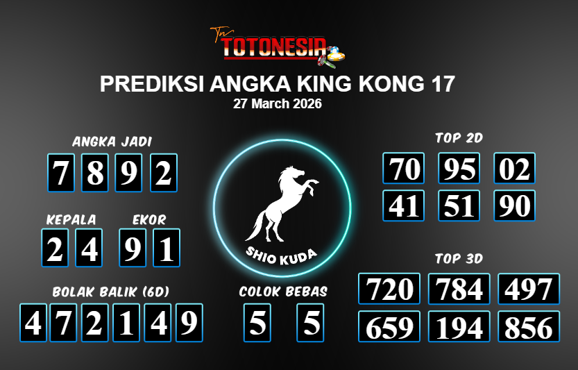 Prediksi KING KONG 17 adalah perhitungan nomor togel unggulan dari agen suhu togel yang menyajikan angka prediksi paling akurat, sehingga memberikan banyak keuntungan saat bermain di pasar togel KING KONG 17 . TotoNesia adalah prediksi dengan rasio kemenangan tertinggi di Indonesia. Sebagai penyedia togel yang dapat dipercaya, kami bertekad untuk memberikan ramalan togel yang handal dengan hadiah terbesarnya. Maka dari itu, jangan sampai terlewatkan prediksi bandar togel dengan hadiah terbanyak bet 100 dari pasar togel terbaik KING KONG 17 Daftar sekarang juga di bandar.
