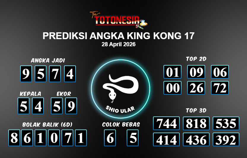 Prediksi KING KONG 17 adalah perhitungan nomor togel unggulan dari agen suhu togel yang menyajikan angka prediksi paling akurat, sehingga memberikan banyak keuntungan saat bermain di pasar togel KING KONG 17 . TotoNesia adalah prediksi dengan rasio kemenangan tertinggi di Indonesia. Sebagai penyedia togel yang dapat dipercaya, kami bertekad untuk memberikan ramalan togel yang handal dengan hadiah terbesarnya. Maka dari itu, jangan sampai terlewatkan prediksi bandar togel dengan hadiah terbanyak bet 100 dari pasar togel terbaik KING KONG 17 Daftar sekarang juga di bandar.