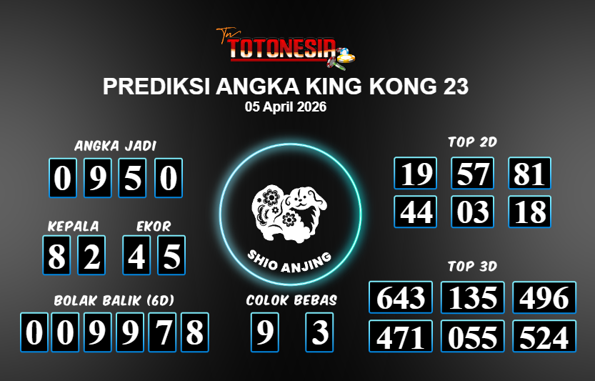 Toto Nesia : Bocoran Prediksi Togel KING KONG 23 Tanggal 05 APRIL 2026