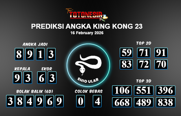 Toto Nesia : Bocoran Prediksi Togel KING KONG 23 Tanggal 16 FEBUARI 2026