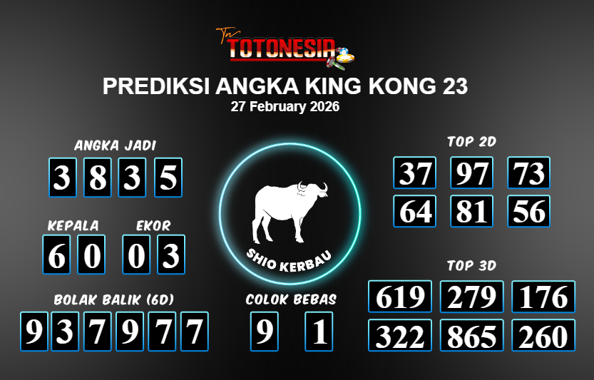 Toto Nesia : Bocoran Prediksi Togel KING KONG 23 Tanggal 27 FEBUARI 2026