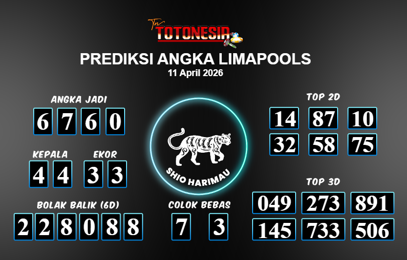 Toto Nesia : Bocoran Prediksi Togel LIMAPOOLS Tanggal 11 APRIL 2026