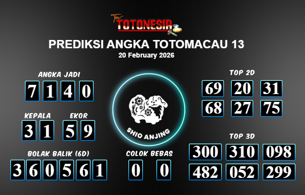 Toto Nesia : Bocoran Prediksi Togel TOTOMACAU 13 Tanggal 20 FEBUARI 2026