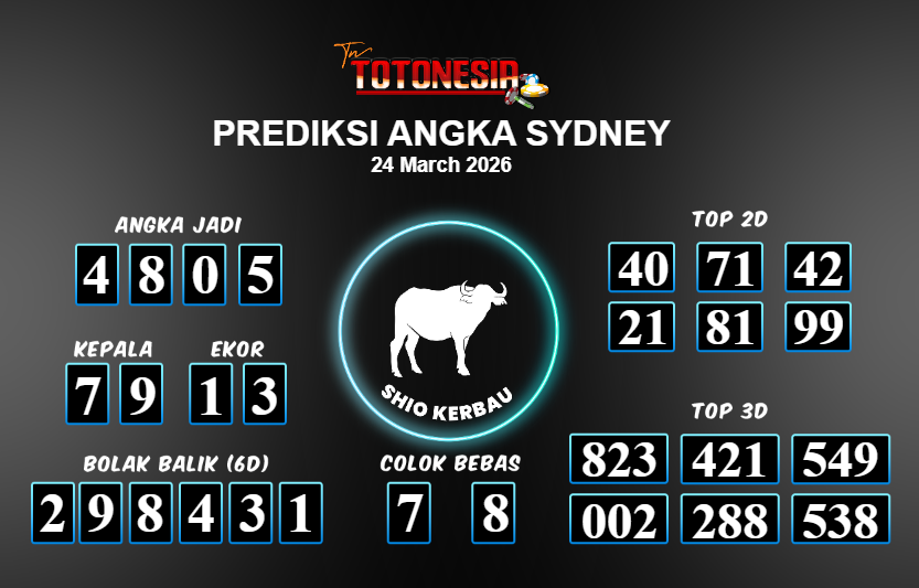 Prediksi SYDNEY adalah perhitungan nomor togel unggulan dari agen suhu togel yang menyajikan angka prediksi paling akurat, sehingga memberikan banyak keuntungan saat bermain di pasar togel SYDNEY . TotoNesia adalah prediksi dengan rasio kemenangan tertinggi di Indonesia. Sebagai penyedia togel yang dapat dipercaya, kami bertekad untuk memberikan ramalan togel yang handal dengan hadiah terbesarnya. Maka dari itu, jangan sampai terlewatkan prediksi bandar togel dengan hadiah terbanyak bet 100 dari pasar togel terbaik SYDNEY Daftar sekarang juga di bandar.