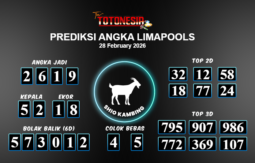 Toto Nesia : Bocoran Prediksi Togel LIMAPOOLS Tanggal 28 FEBUARI 2026