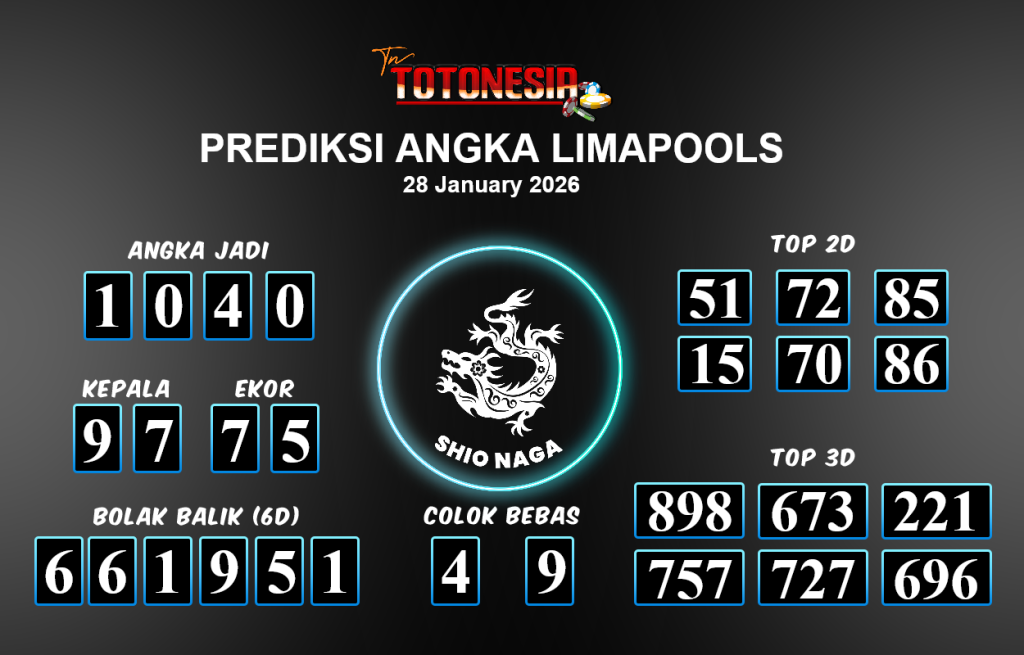 Prediksi LIMAPOOLS adalah perhitungan nomor togel unggulan dari agen suhu togel yang menyajikan angka prediksi paling akurat, sehingga memberikan banyak keuntungan saat bermain di pasar togel LIMAPOOLS . TotoNesia adalah prediksi dengan rasio kemenangan tertinggi di Indonesia. Sebagai penyedia togel yang dapat dipercaya, kami bertekad untuk memberikan ramalan togel yang handal dengan hadiah terbesarnya. Maka dari itu, jangan sampai terlewatkan prediksi bandar togel dengan hadiah terbanyak bet 100 dari pasar togel terbaik LIMAPOOLS daftar sekarang juga di bandar.