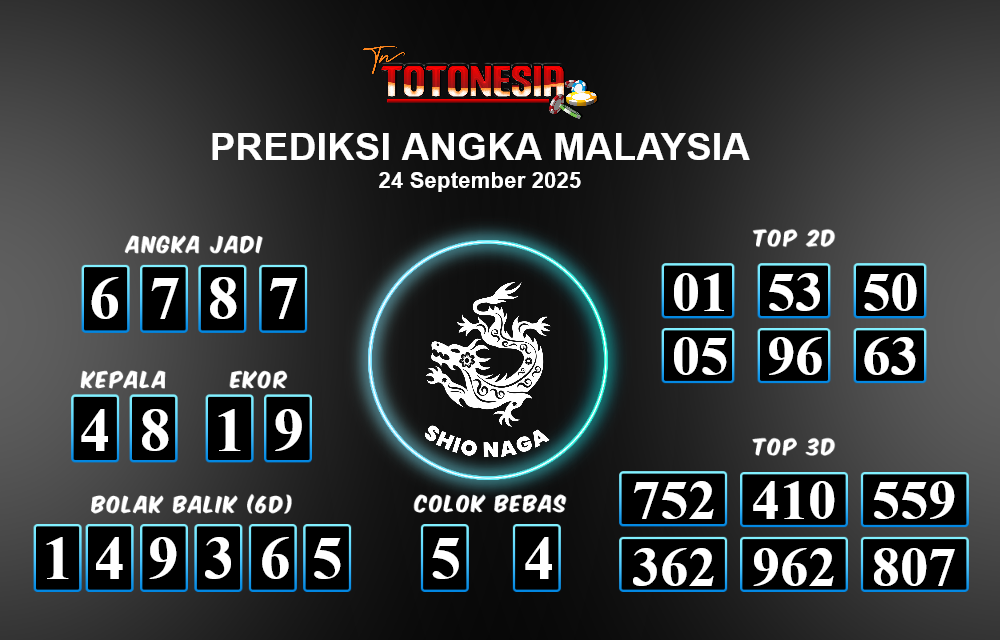 Toto Nesia : Bocoran Prediksi Togel MALAYSIA Tanggal 24 SEPTEMBER 2025
