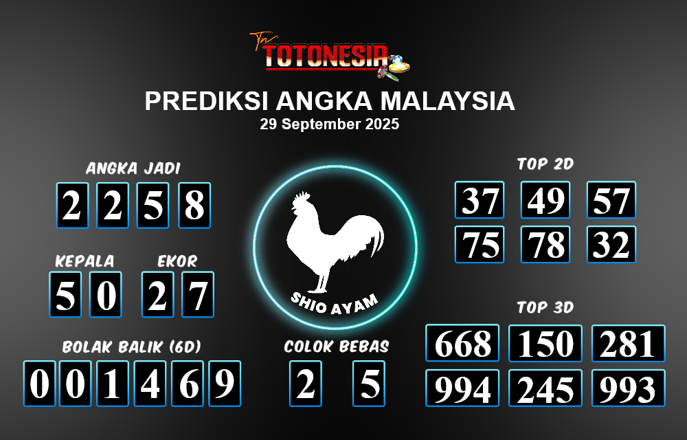 Toto Nesia : Bocoran Prediksi Togel MALAYSIA Tanggal 29 SEPTEMBER 2025