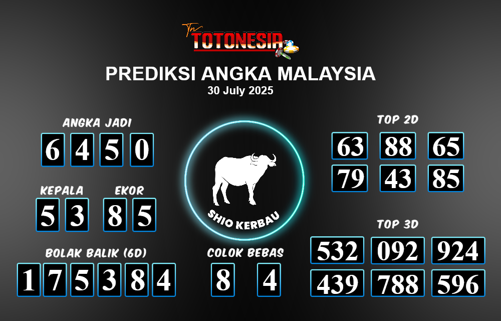 Toto Nesia : Bocoran Prediksi Togel MALAYSIA Tanggal 30 July 2025
