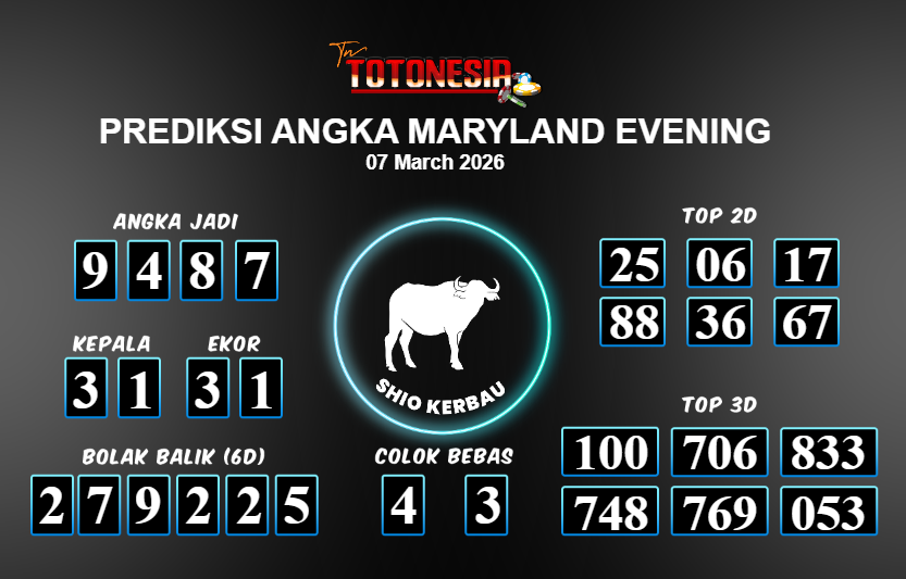 Toto Nesia : Bocoran Prediksi Togel MARYLAND EVENING Tanggal 07 MARET 2026