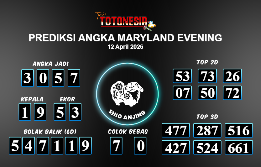 Toto Nesia : Bocoran Prediksi Togel MARYLAND EVENING Tanggal 12 APRIL 2026
