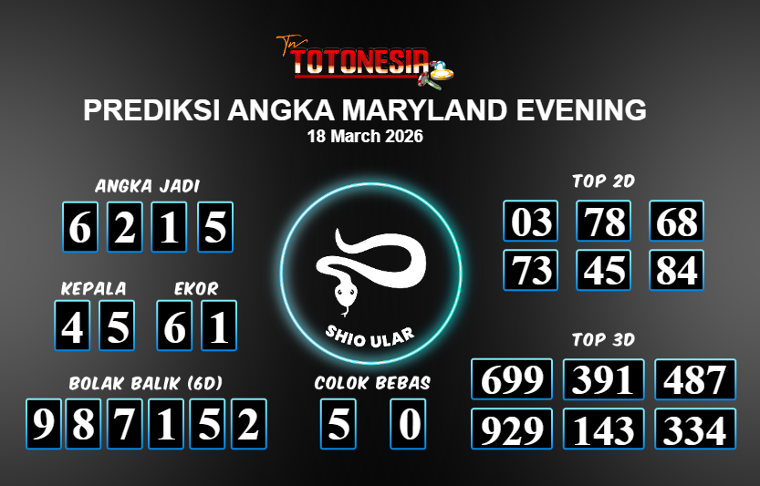 Toto Nesia : Bocoran Prediksi Togel MARYLAND EVENING Tanggal 18 MARET 2026