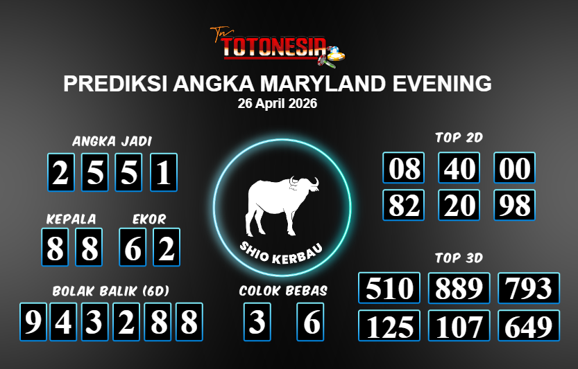 Toto Nesia : Bocoran Prediksi Togel MARYLAND EVENING Tanggal 26 APRIL 2026