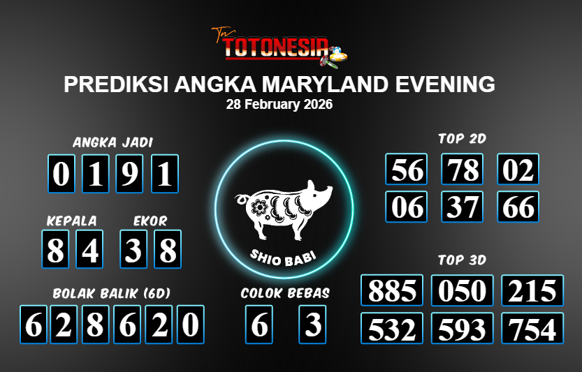 Toto Nesia : Bocoran Prediksi Togel MARYLAND EVENING Tanggal 28 FEBUARI 2026