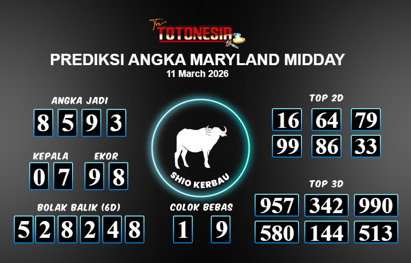 Toto Nesia : Bocoran Prediksi Togel MARYLAND MIDDAY Tanggal 11 MARET 2026
