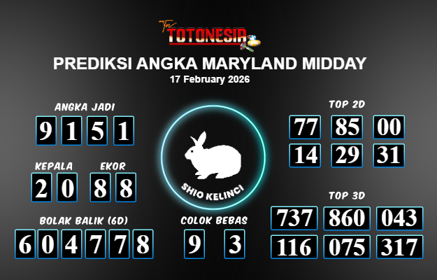 Toto Nesia : Bocoran Prediksi Togel MARYLAND MIDDAY Tanggal 17 FEBUARI 2026