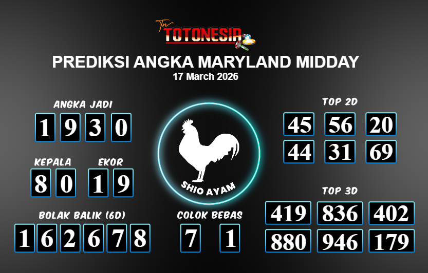 Toto Nesia : Bocoran Prediksi Togel MARYLAND MIDDAY Tanggal 17 MARET 2026