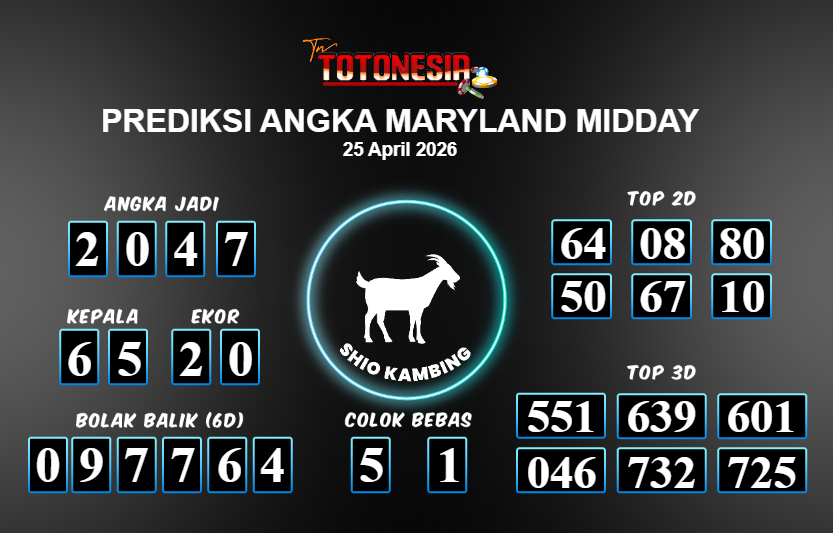 Toto Nesia : Bocoran Prediksi Togel MARYLAND MIDDAY Tanggal 25 APRIL 2026