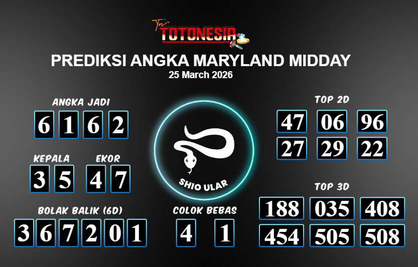 Toto Nesia : Bocoran Prediksi Togel MARYLAND MIDDAY Tanggal 25 MARET 2026