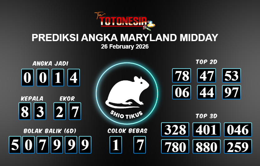 Toto Nesia : Bocoran Prediksi Togel MARYLAND MIDDAY Tanggal 26 FEBUARI 2026