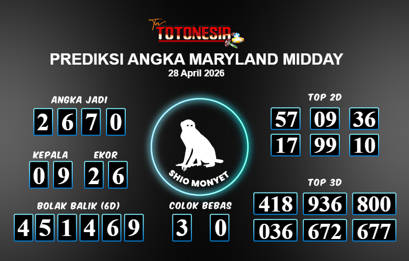 Toto Nesia : Bocoran Prediksi Togel MARYLAND MIDDAY Tanggal 28 APRIL 2026