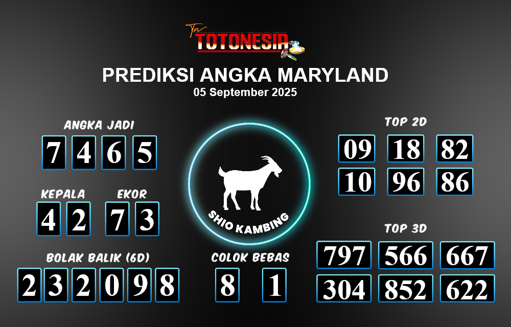 Toto Nesia : Bocoran Prediksi Togel MARYLAND Tanggal 05 SEPTEMBER 2025