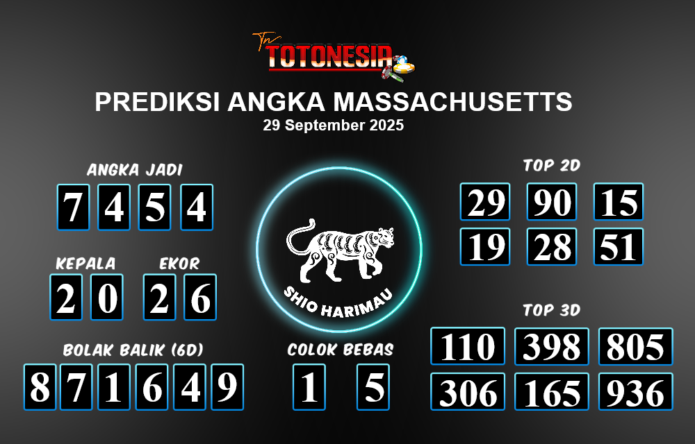 Toto Nesia : Bocoran Prediksi Togel MASSACHUSETTS Tanggal 29 SEPTEMBER 2025