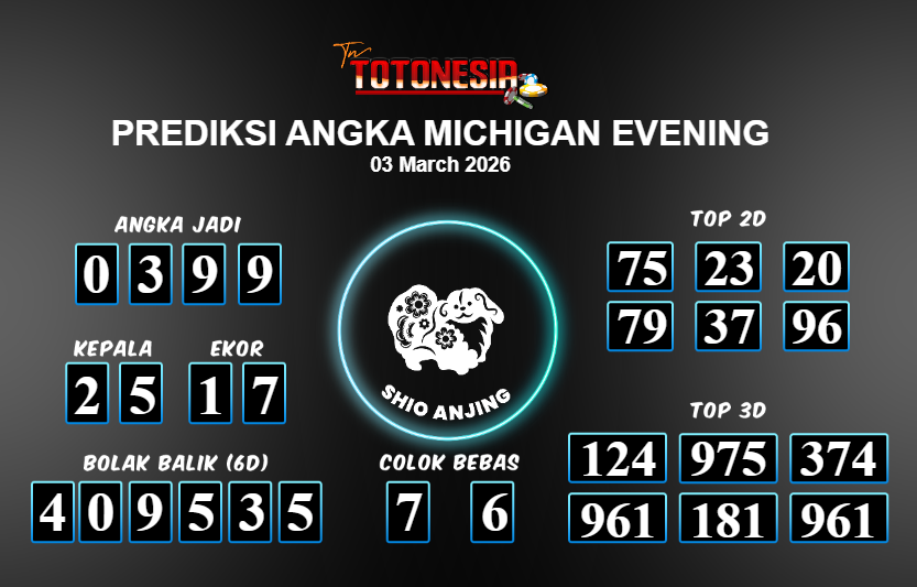Toto Nesia : Bocoran Prediksi Togel MICHIGAN EVENING Tanggal 03 MARET 2026