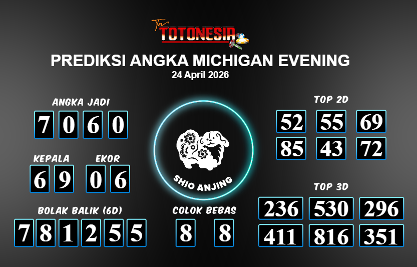 Toto Nesia : Bocoran Prediksi Togel MICHIGAN EVENING Tanggal 24 APRIL 2026