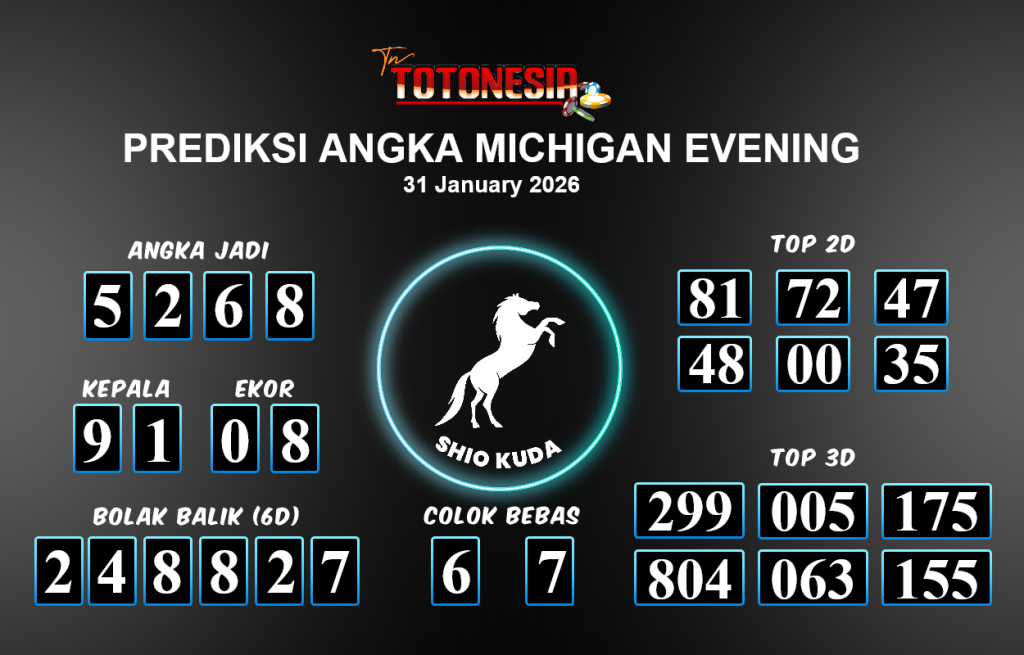 Toto Nesia : Bocoran Prediksi Togel MICHIGAN EVENING Tanggal 31 JANUARI 2026