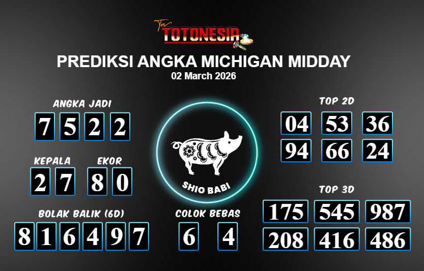 Toto Nesia : Bocoran Prediksi Togel MICHIGAN MIDDAY Tanggal 02 MARET 2026