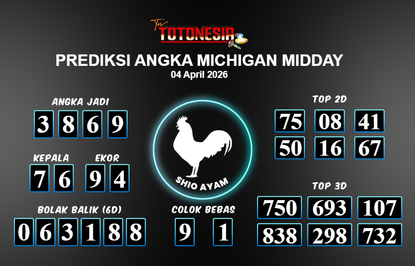 Toto Nesia : Bocoran Prediksi Togel MICHIGAN MIDDAY Tanggal 04 APRIL 2026