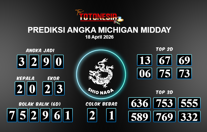 Toto Nesia : Bocoran Prediksi Togel MICHIGAN MIDDAY Tanggal 18 APRIL 2026