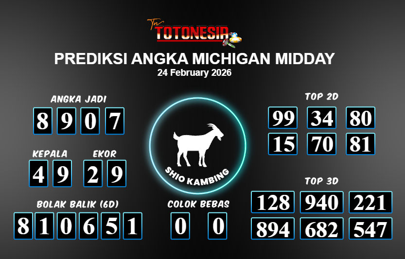 Toto Nesia : Bocoran Prediksi Togel MICHIGAN MIDDAY Tanggal 24 FEBUARI 2026