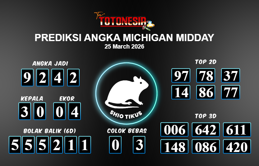 Toto Nesia : Bocoran Prediksi Togel MICHIGAN MIDDAY Tanggal 25 MARET 2026