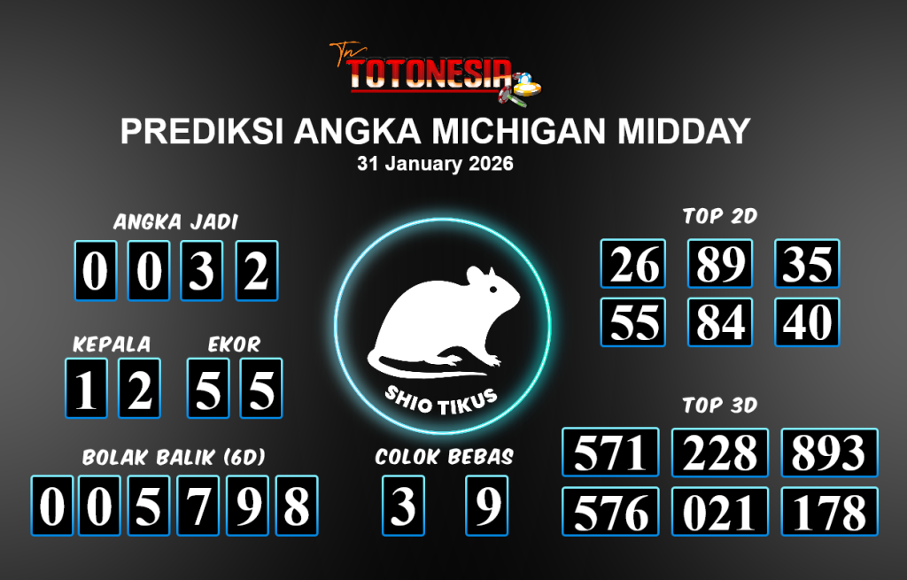 Prediksi MICHIGAN MIDDAY adalah perhitungan nomor togel unggulan dari agen suhu togel yang menyajikan angka prediksi paling akurat, sehingga memberikan banyak keuntungan saat bermain di pasar togel MICHIGAN MIDDAY. TotoNesia adalah prediksi dengan rasio kemenangan tertinggi di Indonesia. Sebagai penyedia togel yang dapat dipercaya, kami bertekad untuk memberikan ramalan togel yang handal dengan hadiah terbesarnya. Maka dari itu, jangan sampai terlewatkan prediksi bandar togel dengan hadiah terbanyak bet 100 dari pasar togel terbaik MICHIGAN MIDDAY Daftar sekarang juga di bandar.