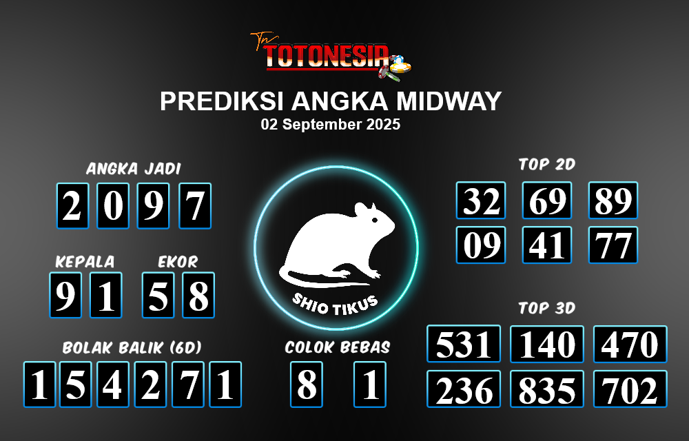 Toto Nesia : Bocoran Prediksi Togel MIDWAY Tanggal 02 SEPTEMBER 2025