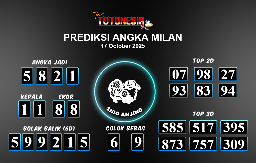Prediksi MILAN adalah perhitungan nomor togel unggulan dari agen suhu togel yang menyajikan angka prediksi paling akurat, sehingga memberikan banyak keuntungan saat bermain di pasar togel MILAN. Toto Nesia adalah prediksi dengan rasio kemenangan tertinggi di Indonesia. Sebagai penyedia togel yang dapat dipercaya, kami bertekad untuk memberikan ramalan togel yang handal dengan hadiah terbesarnya. Maka dari itu, jangan sampai terlewatkan prediksi bandar togel dengan hadiah terbanyak bet 100 dari pasar togel terbaik MILAN daftar sekarang juga di bandar.