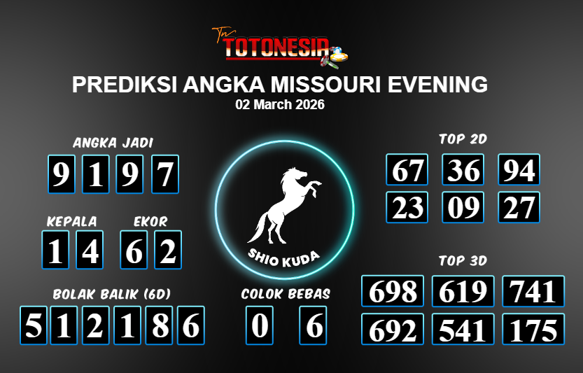 Toto Nesia : Bocoran Prediksi Togel MISSOURI EVENING Tanggal 02 MARET 2026