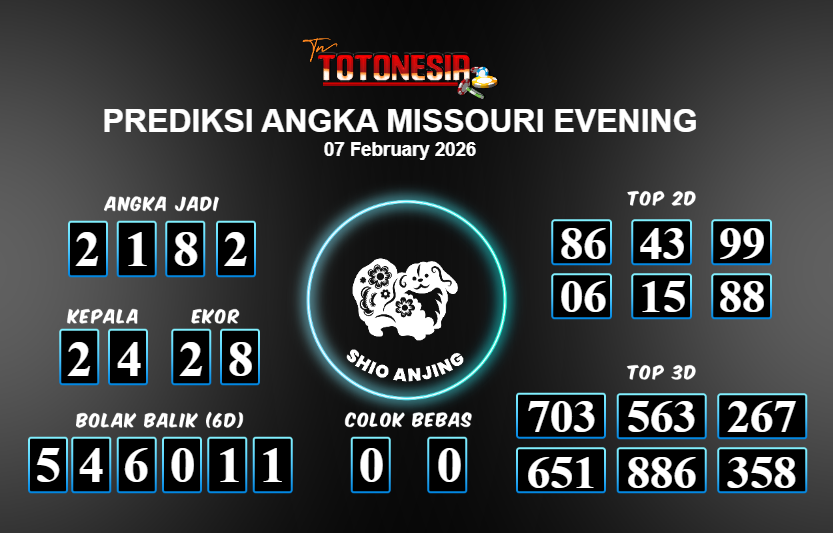Toto Nesia : Bocoran Prediksi Togel MISSOURI EVENING Tanggal 07 FEBUARI 2026
