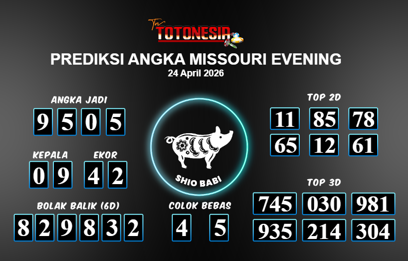 Toto Nesia : Bocoran Prediksi Togel MISSOURI EVENING Tanggal 24 APRIL 2026