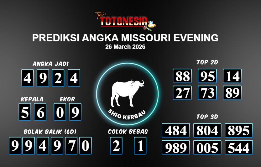 Toto Nesia : Bocoran Prediksi Togel MISSOURI EVENING Tanggal 26 MARET 2026