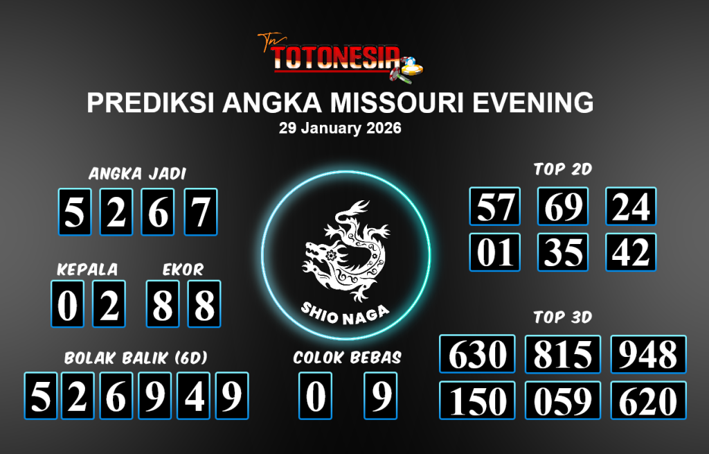 Toto Nesia : Bocoran Prediksi Togel MISSOURI EVENING Tanggal 29 JANUARI 2026