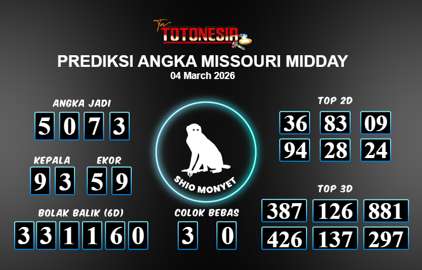Toto Nesia : Bocoran Prediksi Togel MISSOURI MIDDAY Tanggal 04 MARET 2026
