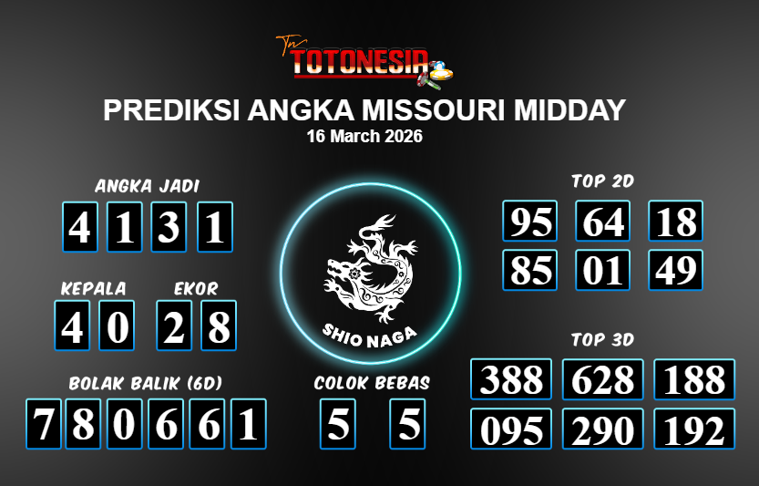 Toto Nesia : Bocoran Prediksi Togel MISSOURI MIDDAY Tanggal 16 MARET 2026