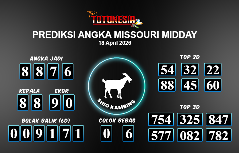 Toto Nesia : Bocoran Prediksi Togel MISSOURI MIDDAY Tanggal 18 APRIL 2026