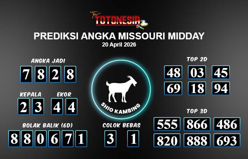 Toto Nesia : Bocoran Prediksi Togel MISSOURI MIDDAY Tanggal 20 APRIL 2026