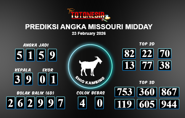 Toto Nesia : Bocoran Prediksi Togel MISSOURI MIDDAY Tanggal 23 FEBUARI 2026