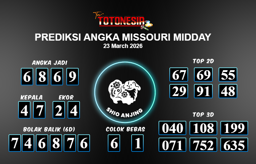Toto Nesia : Bocoran Prediksi Togel MISSOURI MIDDAY Tanggal 23 MARET 2026
