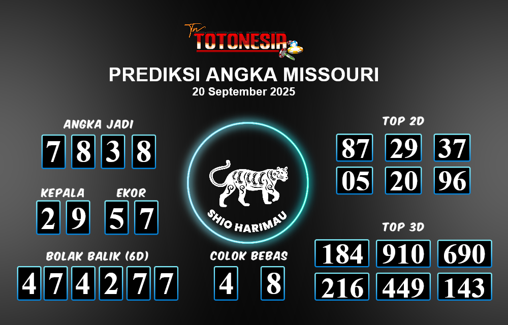 Toto Nesia : Bocoran Prediksi Togel MISSOURI Tanggal 20 SEPTEMBER 2025